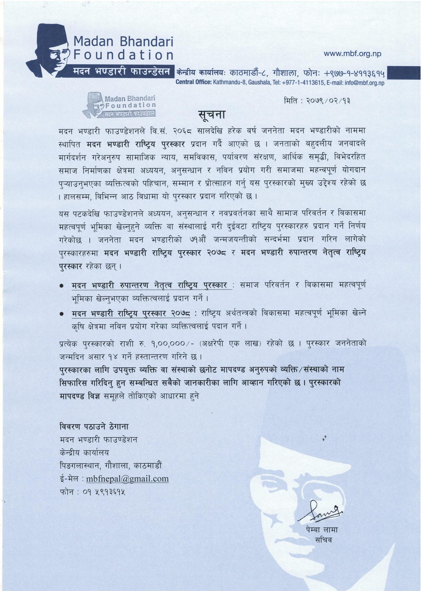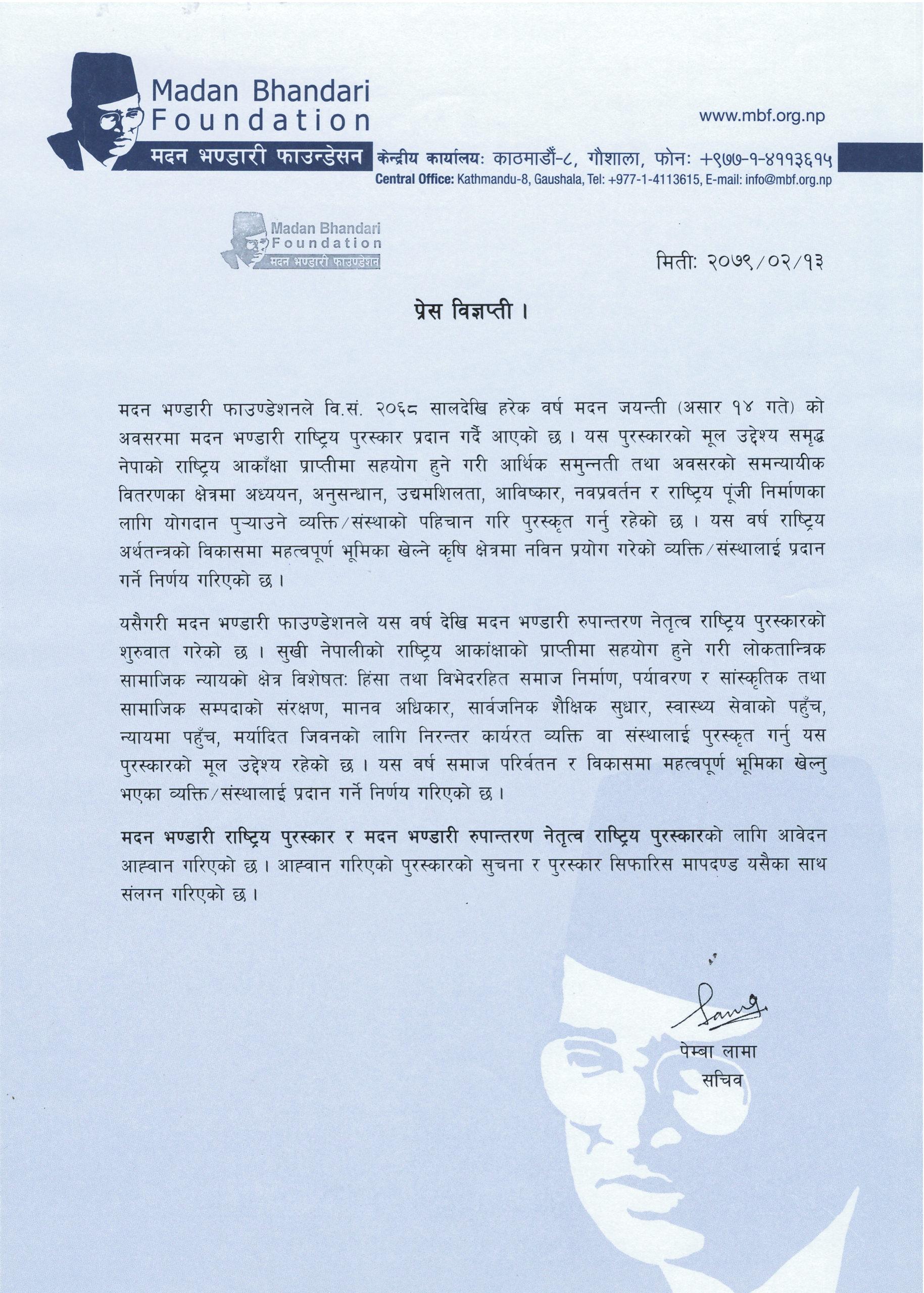 मदन भण्डारी राष्ट्रिय पुरस्कार २०७८ र मदन भण्डारी रुपान्तरण नेतृत्व राष्ट्रिय पुरस्कार